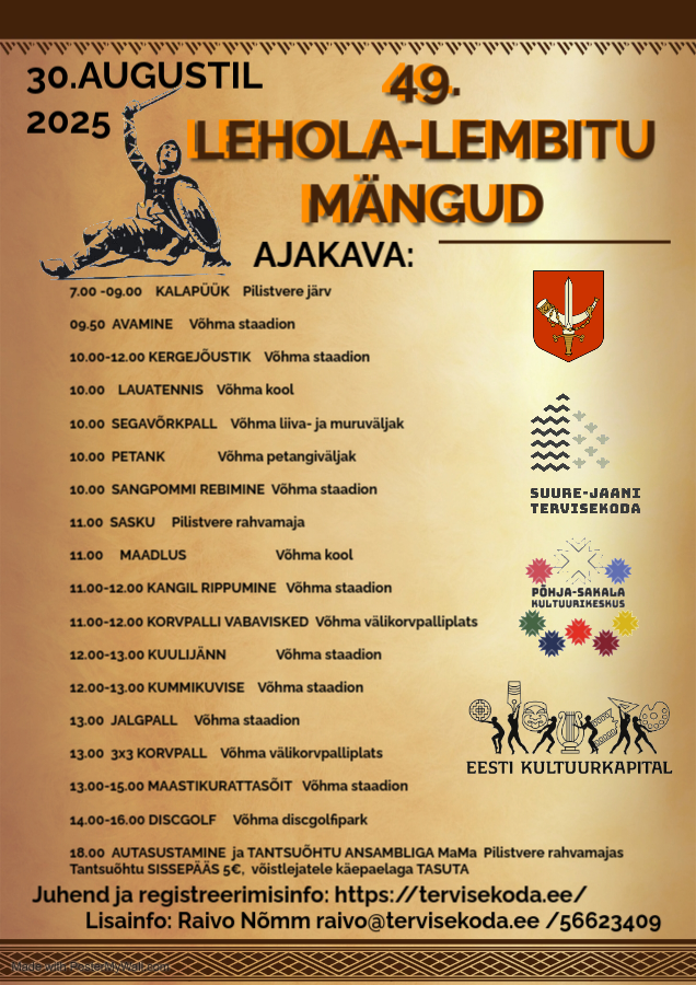 Registreerimine võistkondlikele aladele (korvpall, segavõrkpall, jalgpall) toimub hiljemalt 27. augustiks, e-postile raivo@tervisekoda.ee