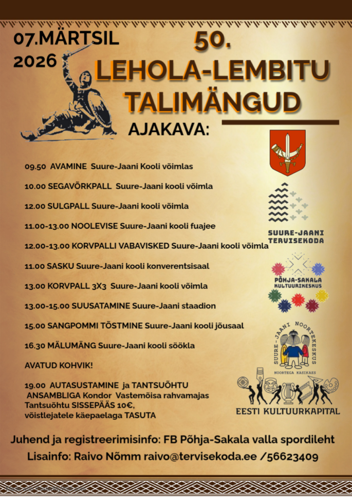 Koostöös Suure-Jaani Tervisekoja, Põhja-Sakala Vallavalitsuse ja kohalike spordiklubidega toimuvad 30. augustil 49. Lehola-Lembitu suvemängud.